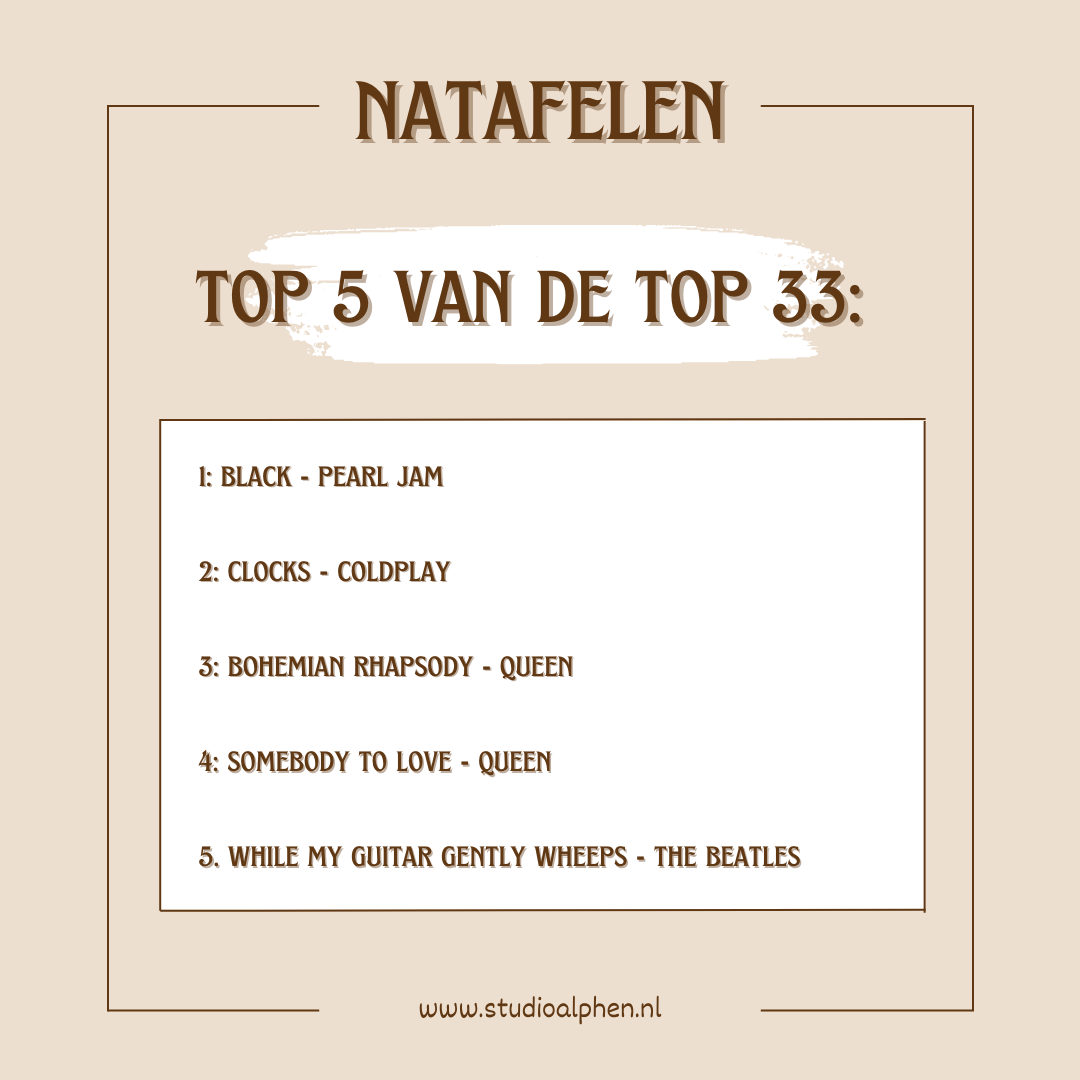 Als je maar 33 platen op de 33 toeren van je platenspeler mocht draaien, welke zouden dat dan zijn? Laat via de link je stemlijstje achter voor de Natafelen Top 33. En hoor ze vervolgens in die Top 33 op donderdag 18 december.